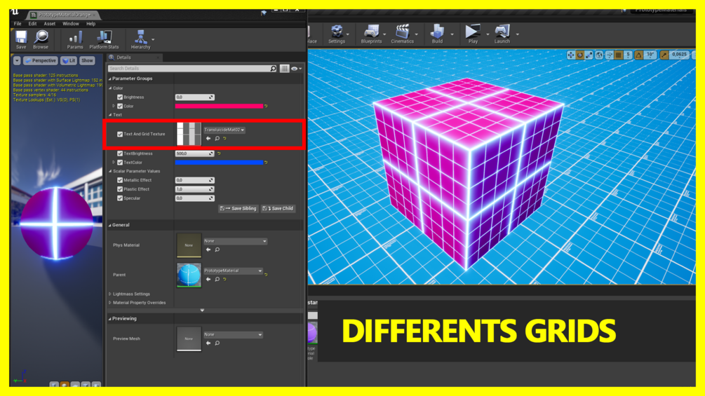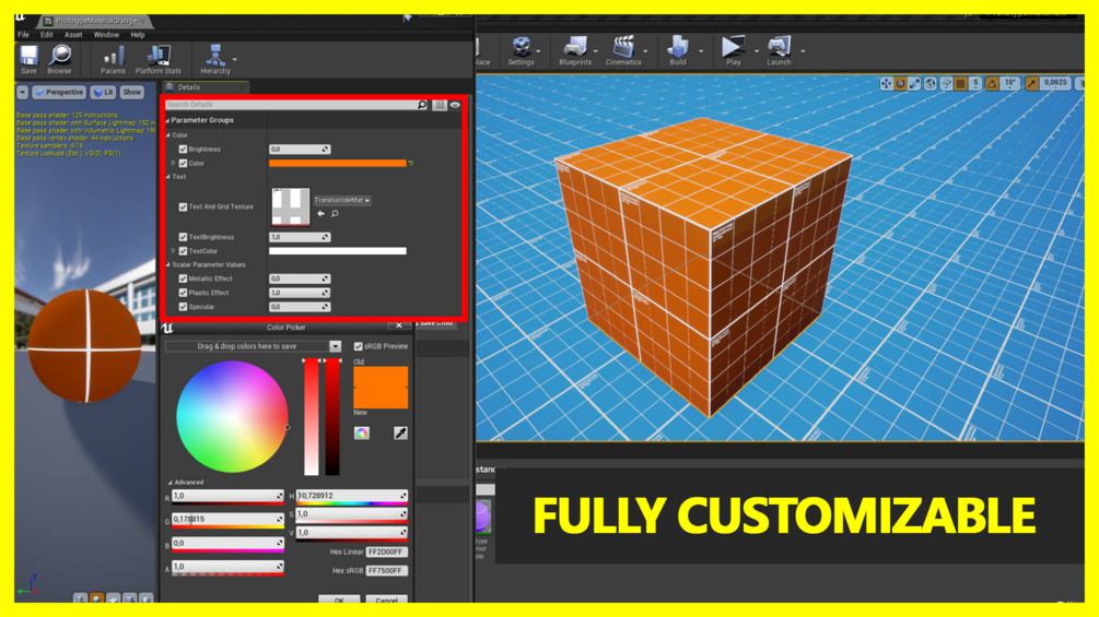 Prototype Materials is an asset to help the prototyping of your project with Unreal Engine 4. It allows to have access to many instances of varied and aesthetic materials and a fully modular material to create your own instances. This product adapts to any type of project allowing you to test the gameplay, the maps of your game.